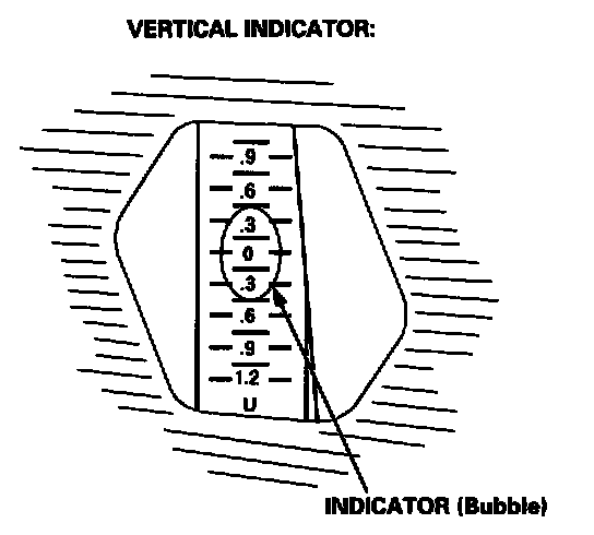 3. Check the vertical adjustment indicator. The bubble should be centered underneath the longest scribe mark on the gauge.