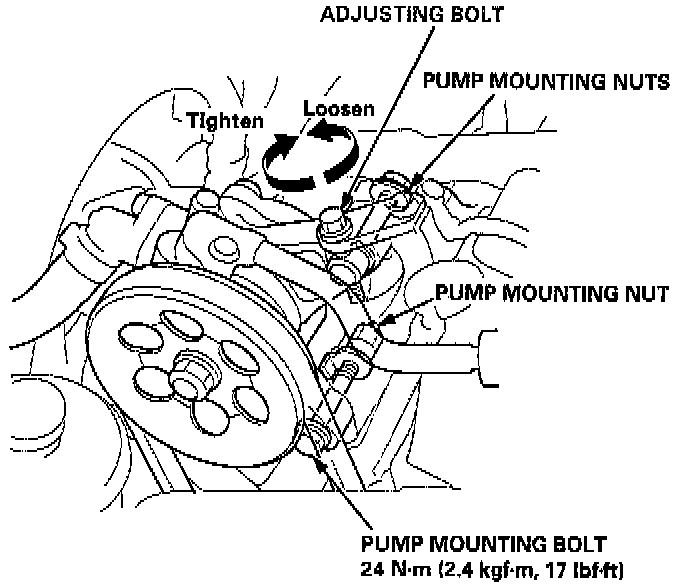 1. Loosen the power steering pump mounting nuts.