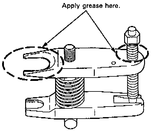 13. Apply grease to the special tool on the areas shown. This will ease installation of the tool and prevent damage to the pressure bolt threads.