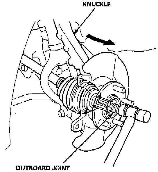27. Pull the knuckle outward, and remove the driveshaft outboard joint from the knuckle by tapping the driveshaft end with a plastic hammer, then remove the knuckle.