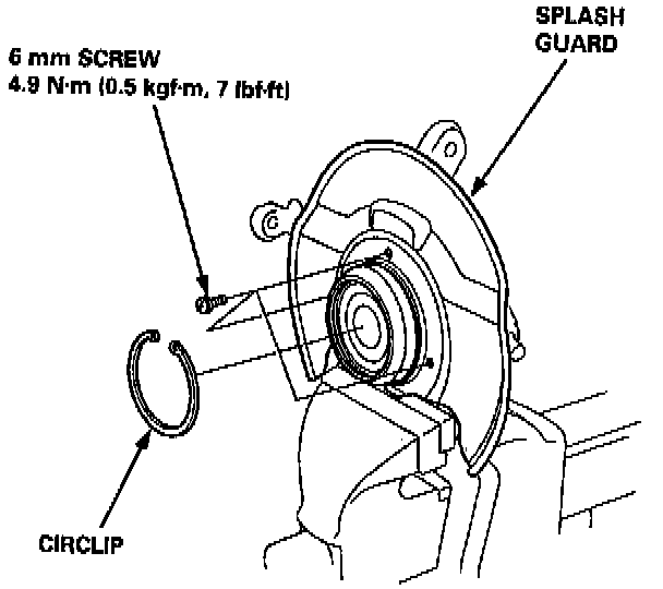 29. Remove the circlip and the splash guard from the knuckle.