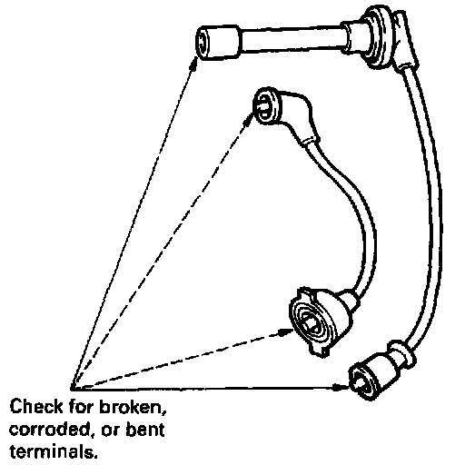 1. Check the condition of the wire terminals. If any terminal is corroded, clean it, and if it is broken or distorted replace the wire.