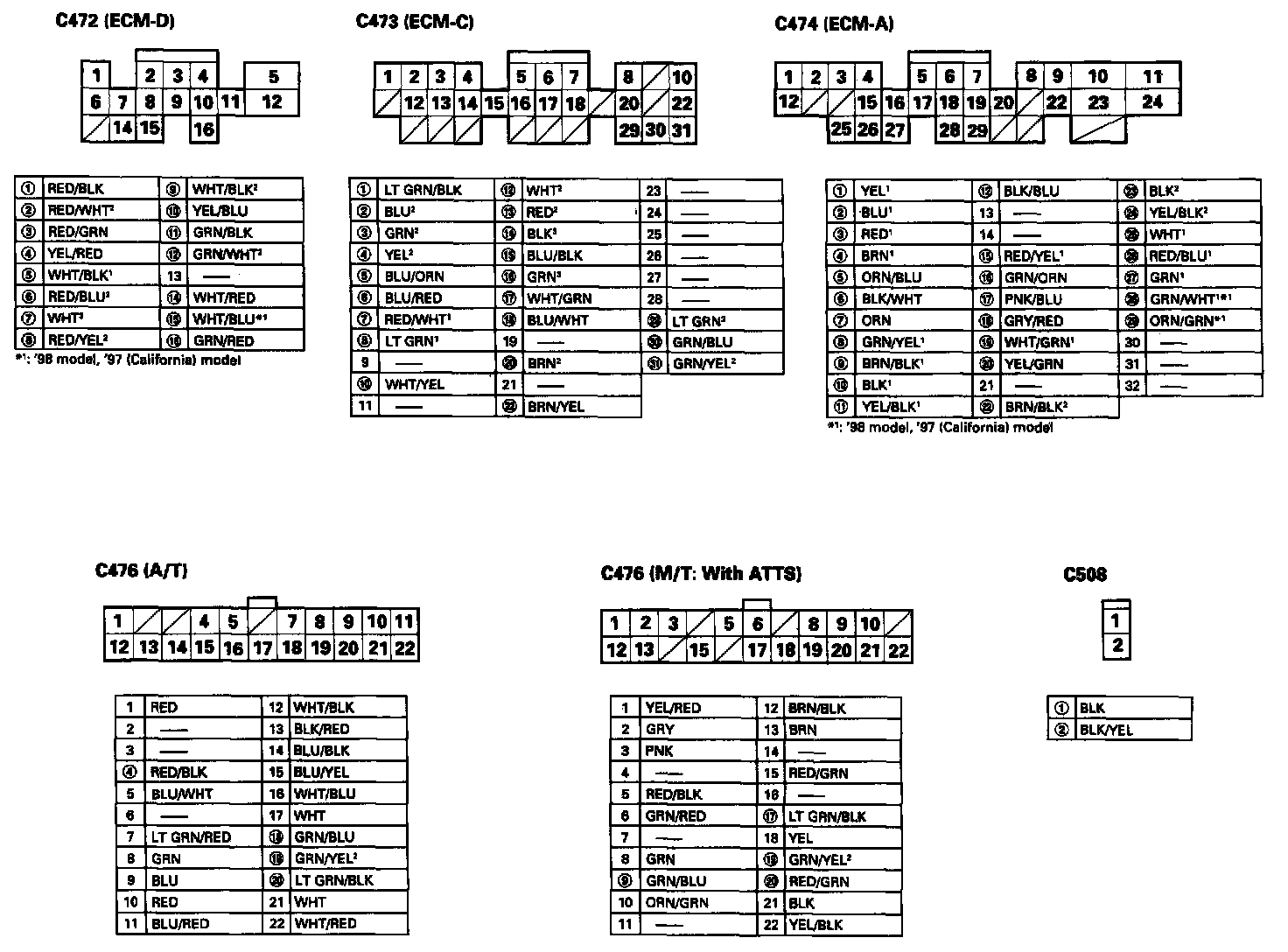 - Different wires with the same color have been given a number suffix to distinguish them (for example, YEL/BLK1 and YEL/BLK2 are not the same).