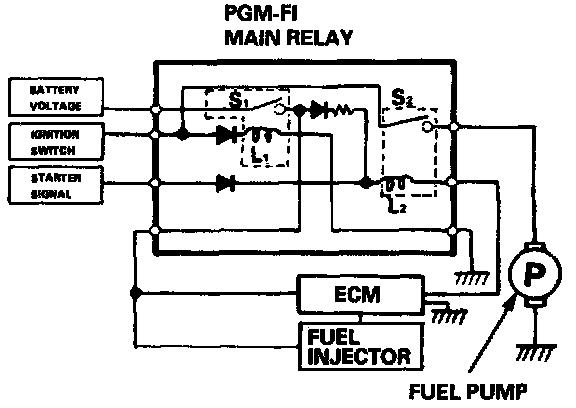 The PGM-FI main relay actually contains two individual relays. This relay is located at the left side of the cowl.