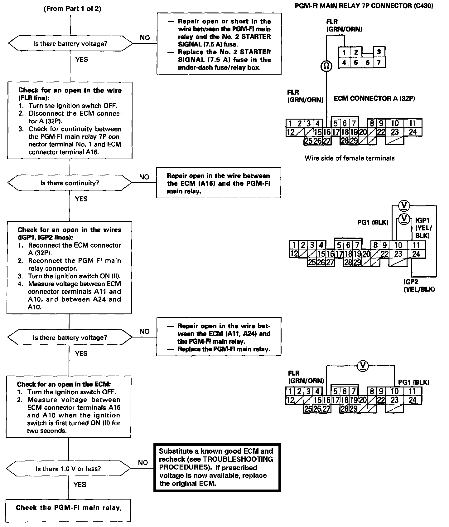 - If there is continuity, the PGM-FI main relay is OK. If the fuel pump still does not work, go to Harness Testing.