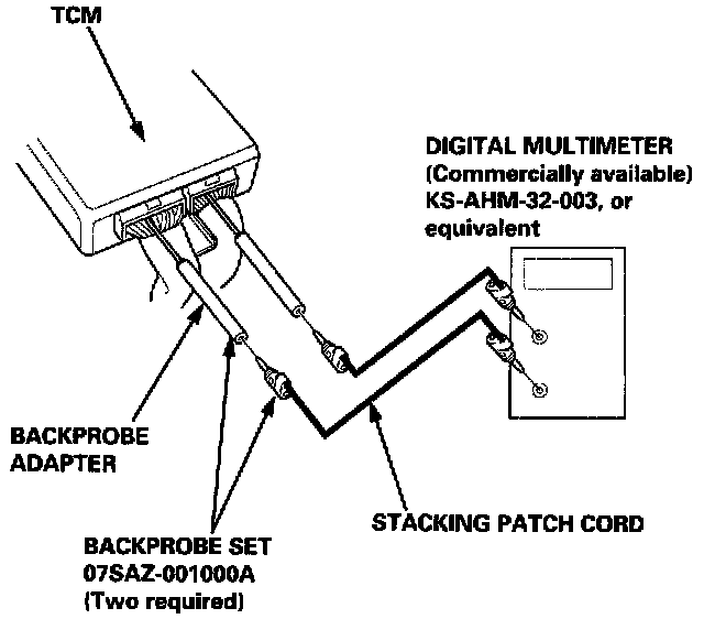 5. Inspect the circuit on the TCM according to the troubleshooting flowchart with the special tools and a digital multimeter.