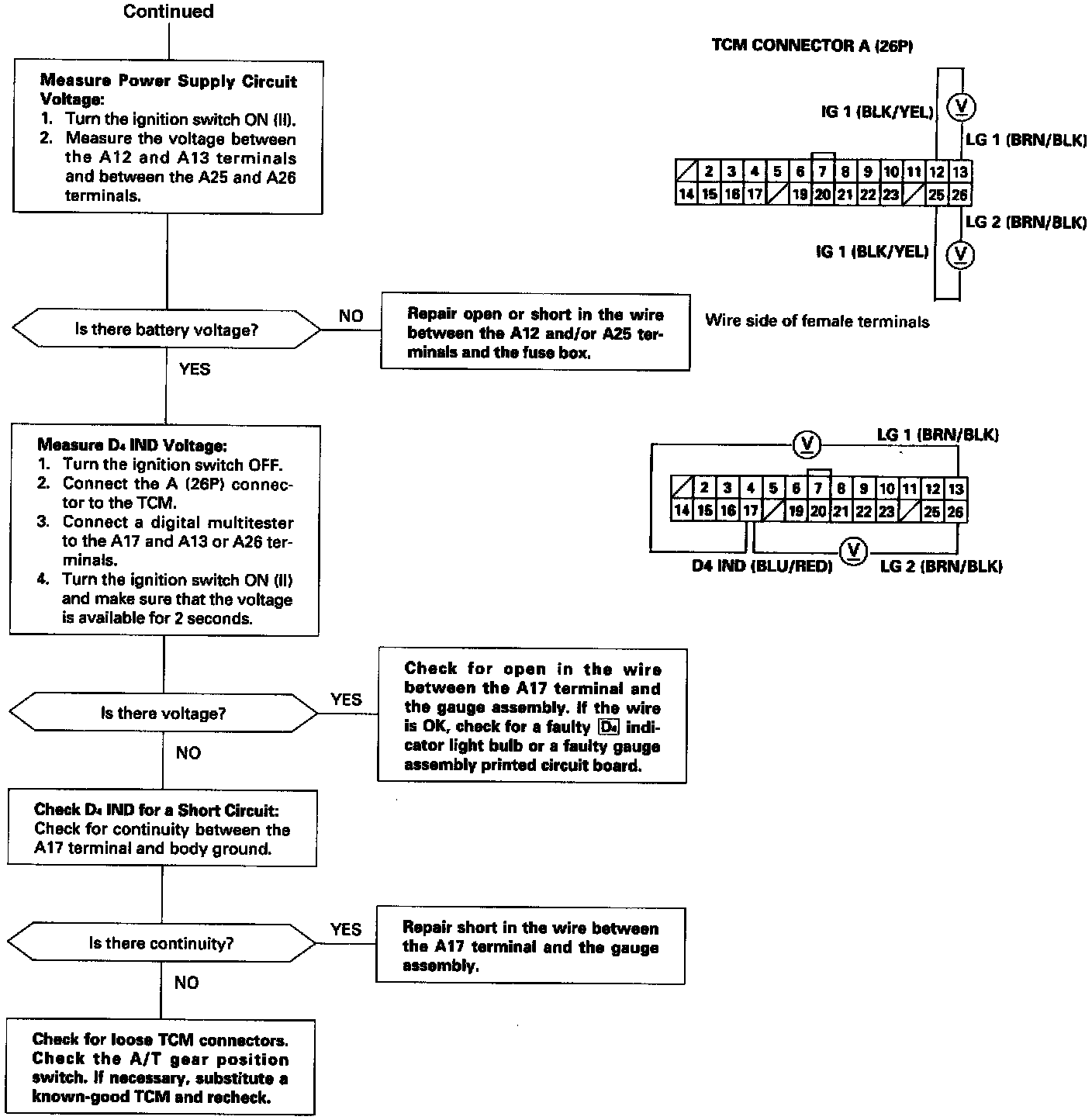 D4 Indicator Light Does Not Come ON With the Ignition Switch