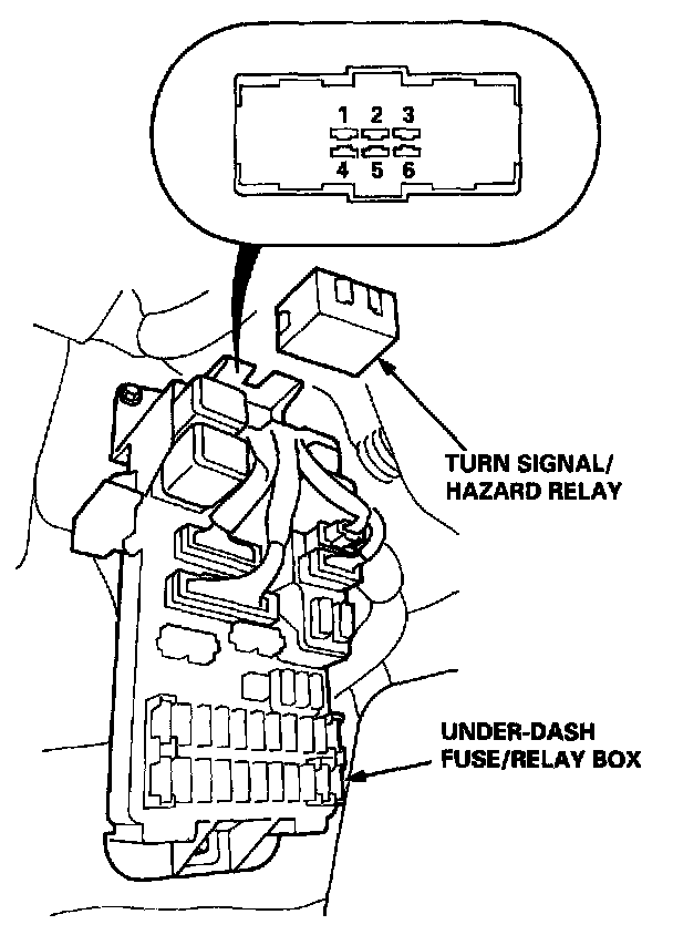 1. Remove the driver's side kick panel, then remove the turn signal/hazard relay from the under-dash fusel relay box.2. Inspect relay and socket terminals to be sure they are all making good contact.