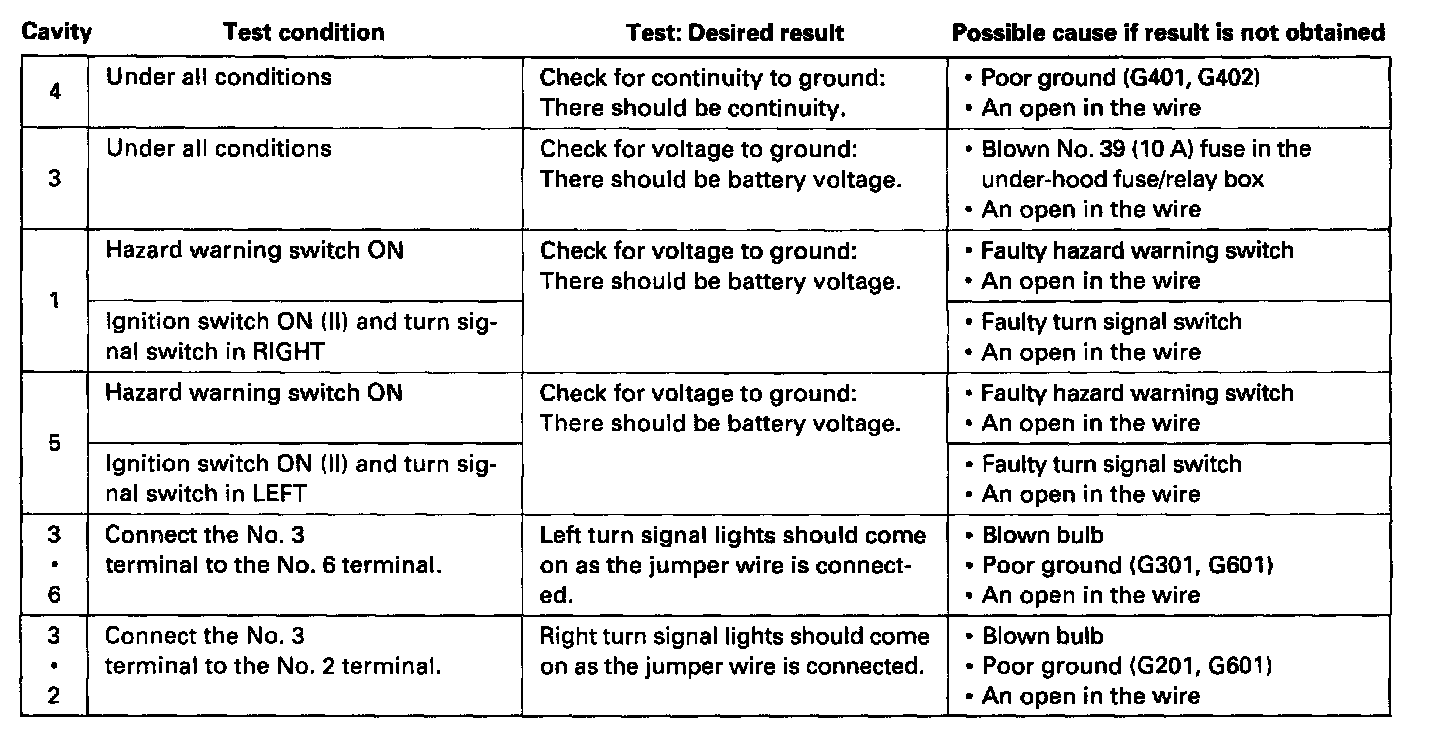 - If all the input tests prove OK, the turn signal/hazard relay must be faulty; replace it.