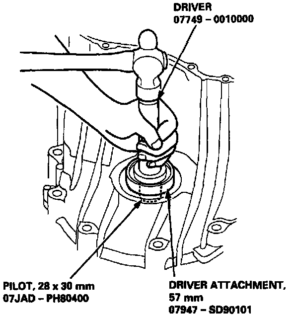 1. Install the oil seal in the transmission housing using the special tools as shown.