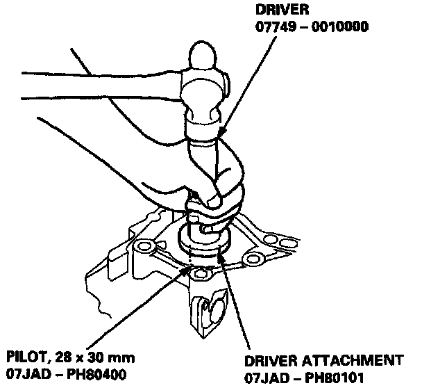 2. Drive the oil seal into the torque converter housing using the special tools as shown.