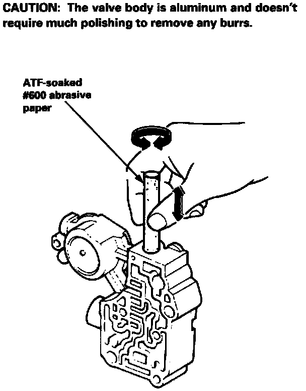NOTE: This repair is only necessary if one or more of the valves in a valve body do not slide smoothly in their bores. Use this procedure to free the valves.