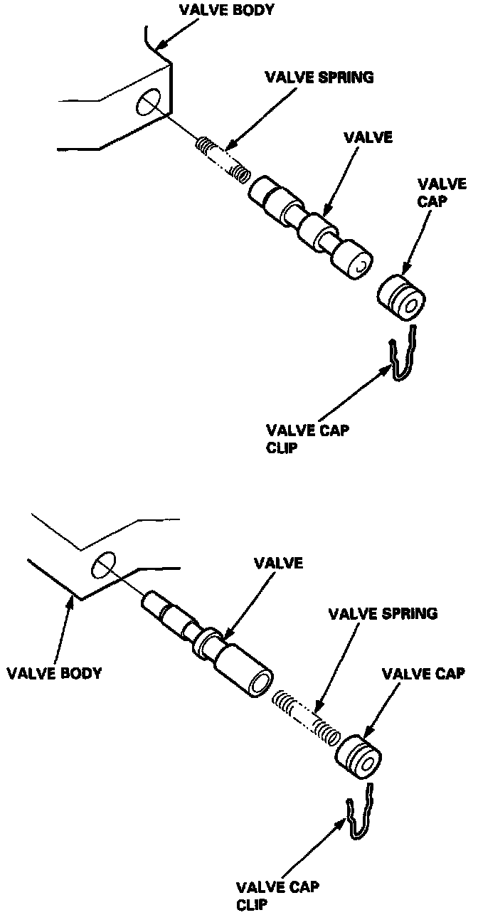 - Caps with a projected tip on each end are installed with the smaller tip toward the inside of the valve body. The small tip is a spring guide.