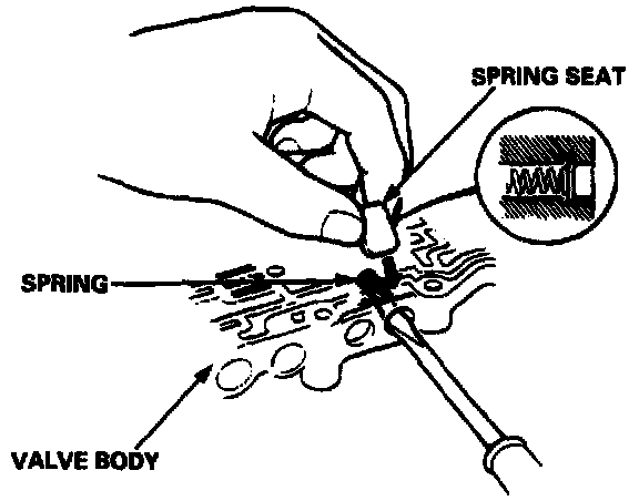 Set the spring in the valve, then install it in the valve body. Push the spring in with a screwdriver, then install the spring seat.