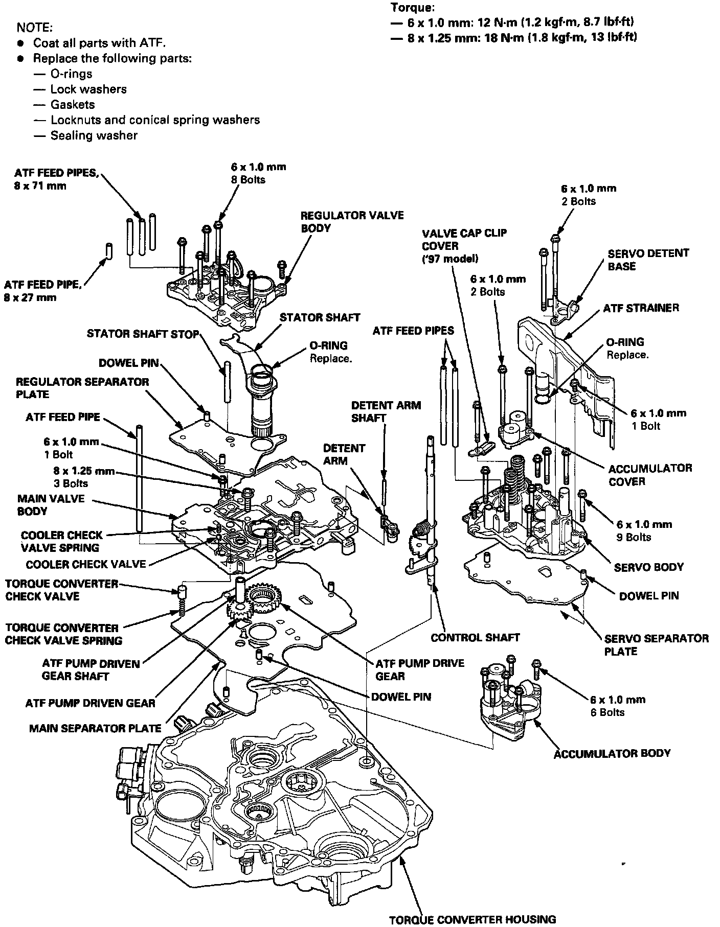 6. Install the regulator valve body (eight bolts).