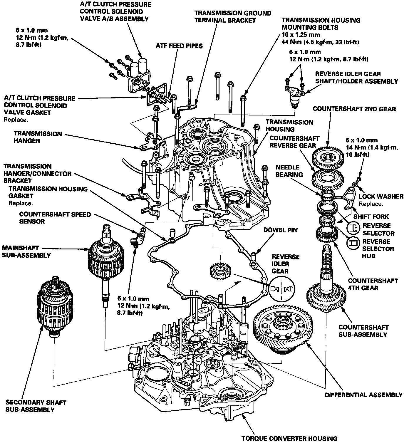NOTE: Take care not to move the A/T gear position switch when tightening the bolts.