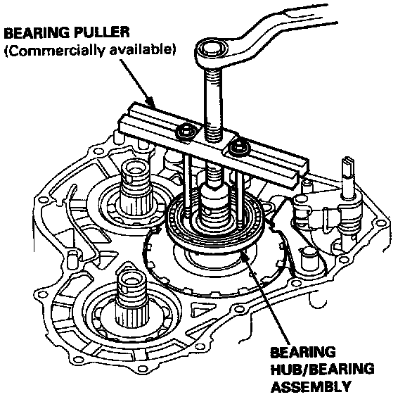 37. If the clearance is out of tolerance, remove the bearing hub/bearing assembly using a puller.