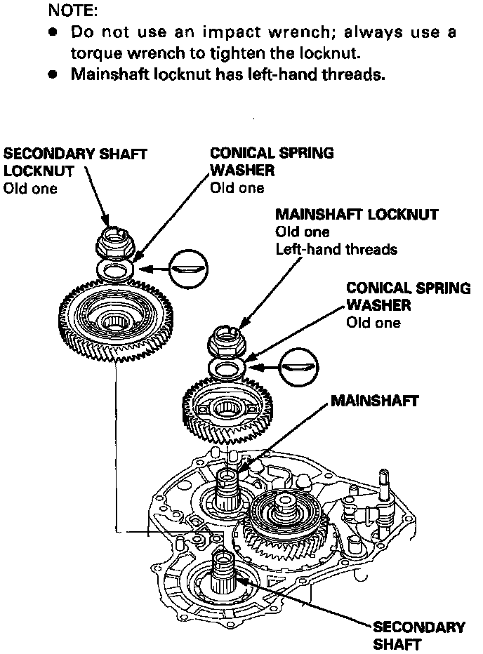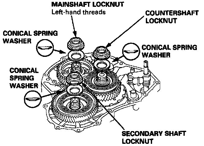 - Mainshaft locknut has left-hand threads.