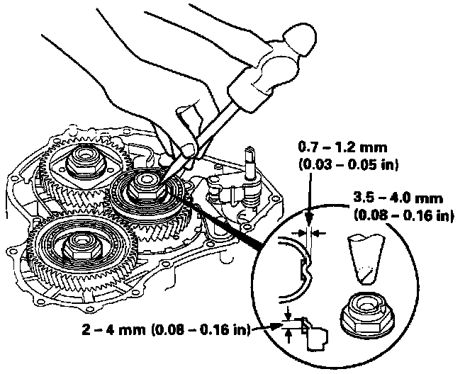 49. Stake each locknut into its shaft using a 3.5 mm punch as shown.
