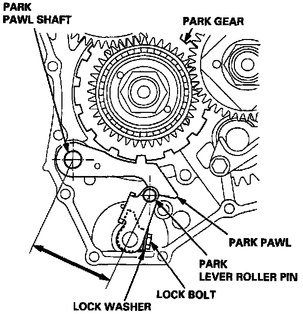50. Set the park lever in the [E position, then verify that the park pawl engages the park gear.