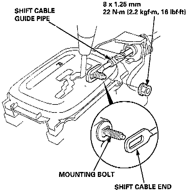 NOTE: Do not remove the shift cable by the shift cable guide pipe.