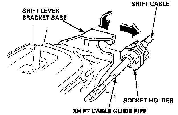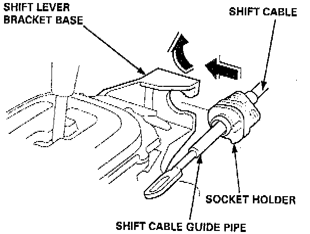 4. Rotate the socket holder on the shift cable counterclockwise a quarter turn, then slide the holder to remove the shift cable from the shift lever bracket base.