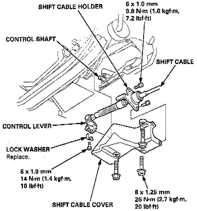 8. Remove the control lever from the control shaft, then replace the new shift cable.