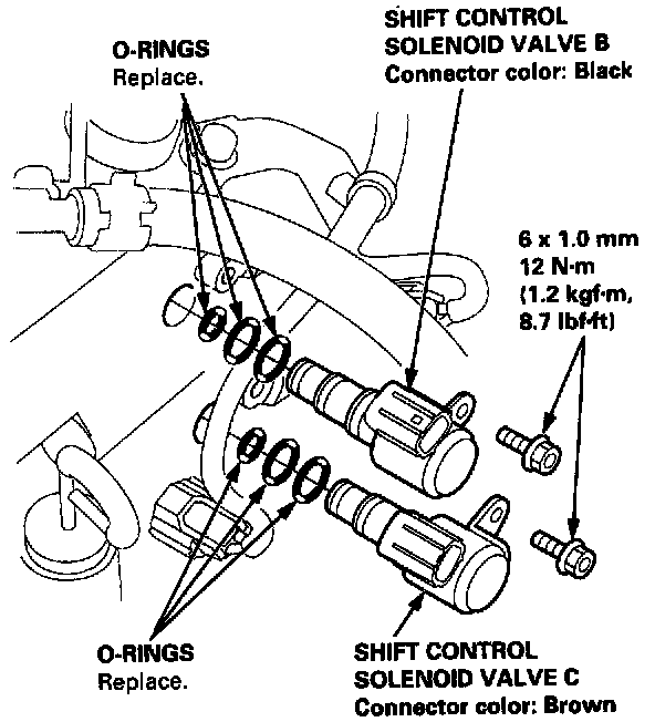 2. Install a new shift control solenoid valve B or C with new O-rings.
