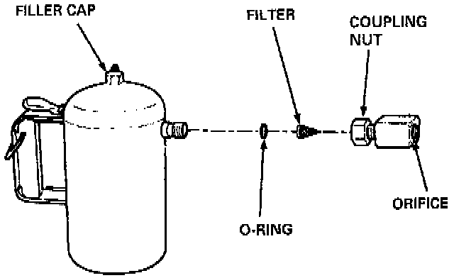 5. The fluid orifice is located behind the filter. Clean it with the pick stored in the bottom of the tank handle, or blow it clean with air. Securely reassemble all parts.