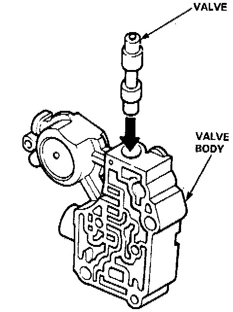 7. Remove the valve, and thoroughly clean it and the valve body with solvent. Dry all parts with compressed air, then reassemble using ATF as a lubricant.