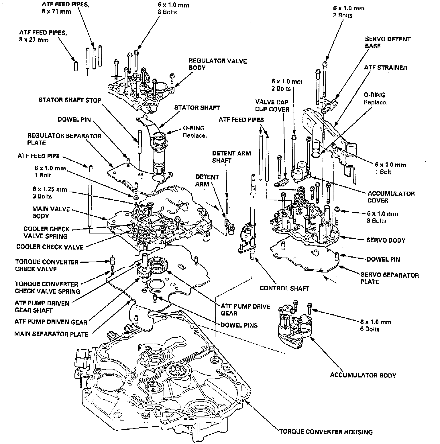 1. Remove the ATF feed pipes from the main valve body, regulator valve body, and servo body.