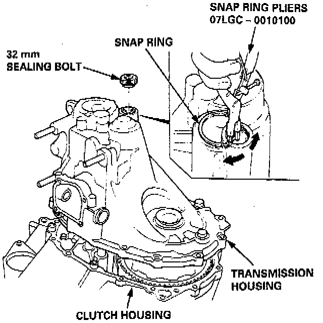 - If the transmission housing or clutch housing are replaced, the bearing preload must be adjusted.
