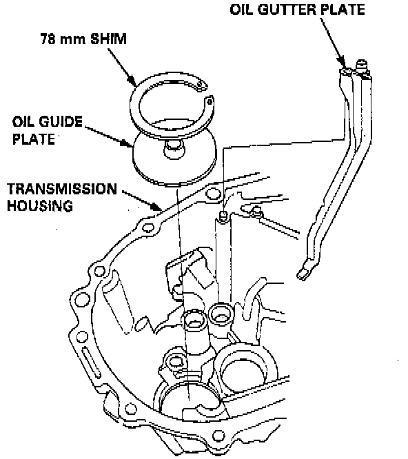 9. Remove the 78 mm shim and oil guide plate, then remove the oil gutter plate.