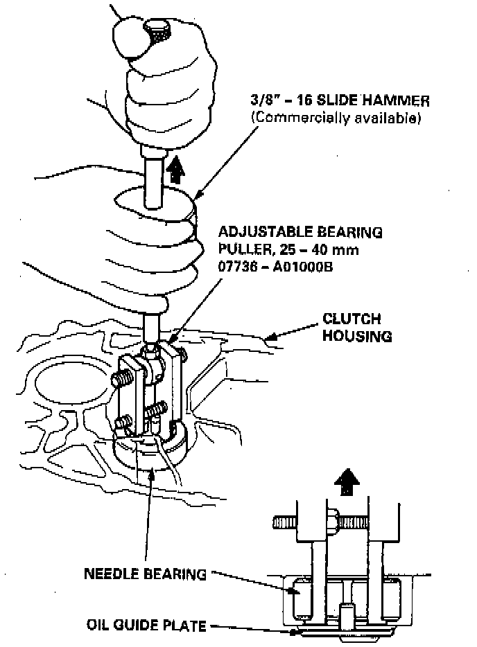 2. Remove the needle bearing using the special tool, then remove the oil guide plate.