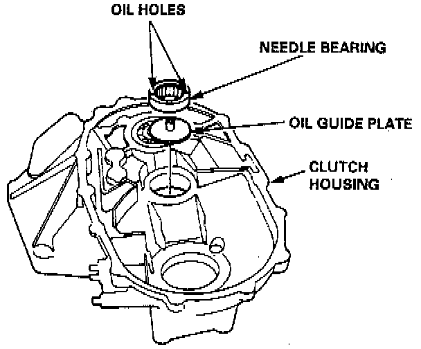 3. Position the oil guide plate and new needle bearing in the bore of the clutch housing.