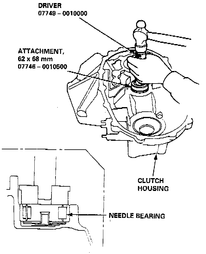 4. Install the needle bearing using the special tools.