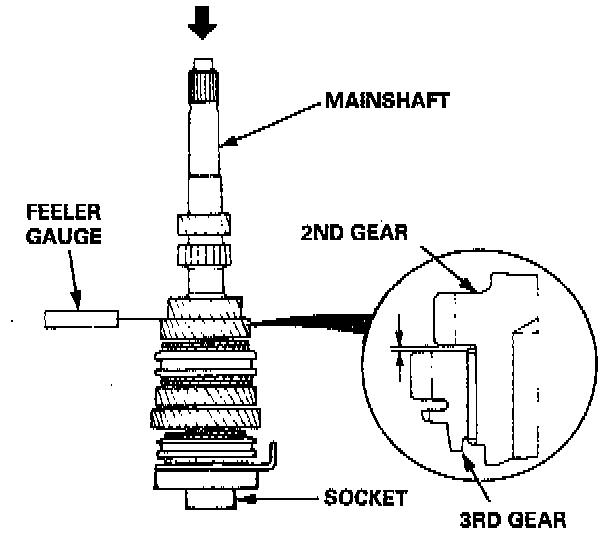 NOTE: If replacement is required, always replace the synchro sleeve and hub as a set.1. Support the bearing inner race with a socket, and push down on the mainshaft.