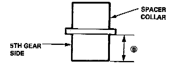 9. If distance (B) is less than the service limit, replace the spacer collar with a new one. If distance (B) is within the service limit, measure the thickness of 5th gear.