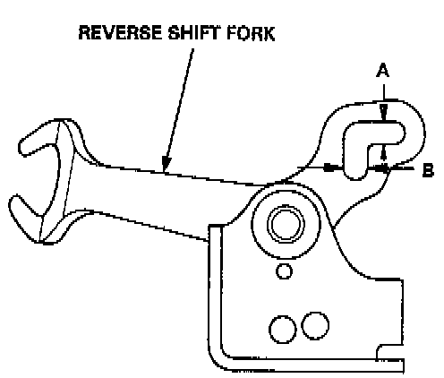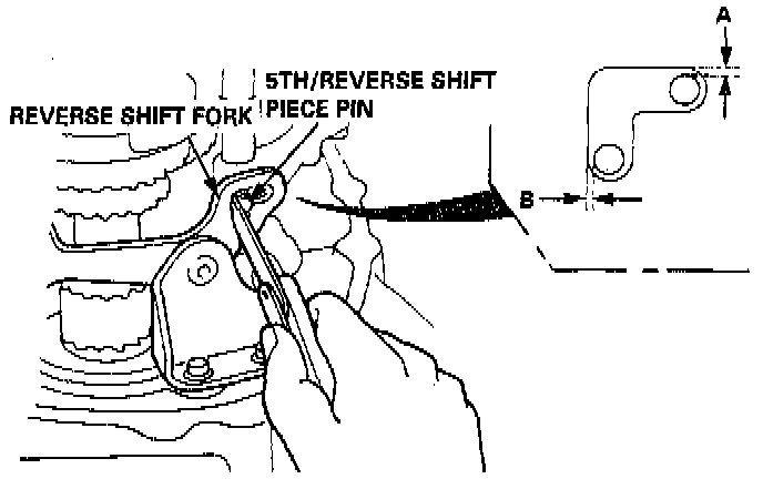 1. Measure the clearances between the reverse shift fork and 5th/reverse shift piece pin.