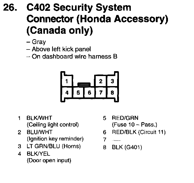 26. C402 Security System Connector (Honda Accessory) (Canada Only):