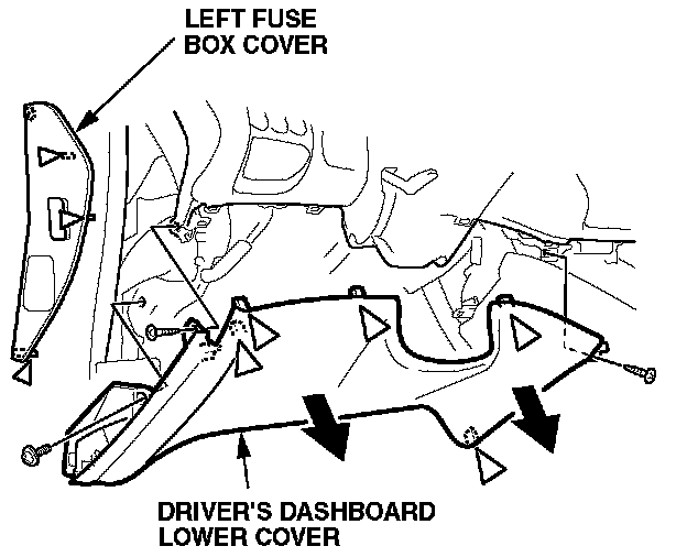 5. Remove the three mounting screws, then remove the driver's dashboard lower cover.