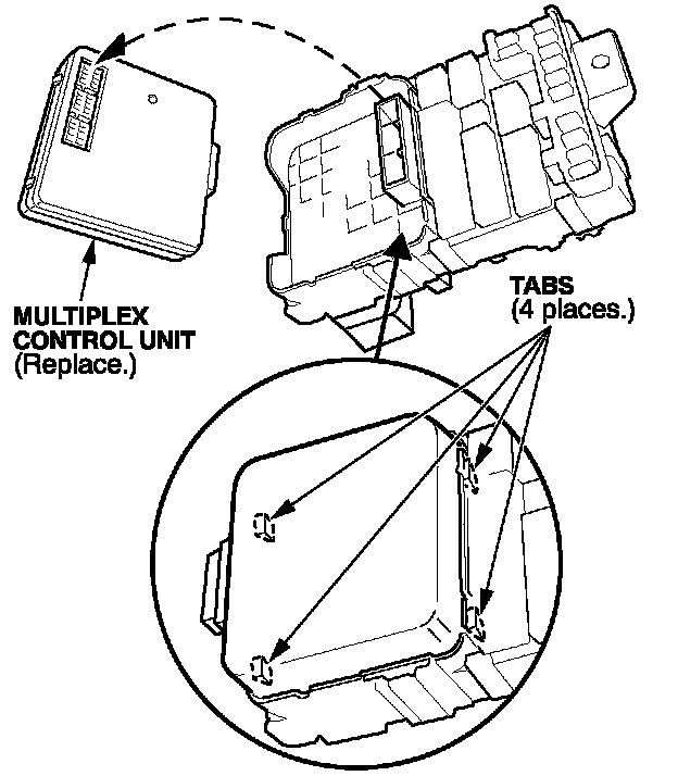 9. Install the new multiplex control unit on the back of the fuse box. Reinstall the fuse box.
