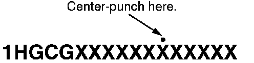 14. Center-punch a completion mark above the 12th character of the engine compartment VIN.