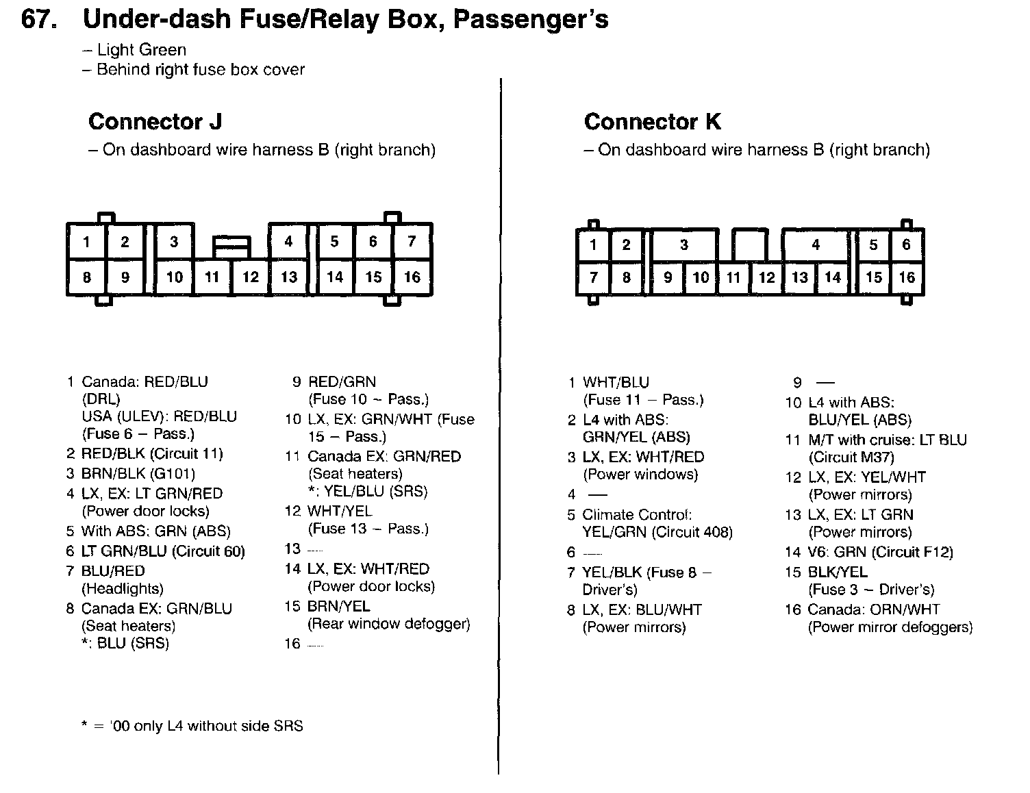 67. Under-dash Fuse/Relay Box, Passenger's: