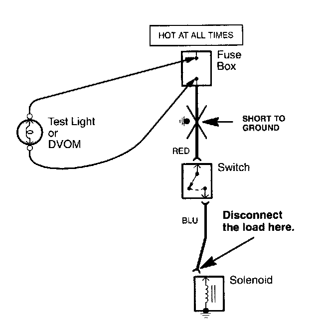 4. Where the test light goes , or the DVOM voltage drops to zero, there is a short to ground in the wiring near that point.