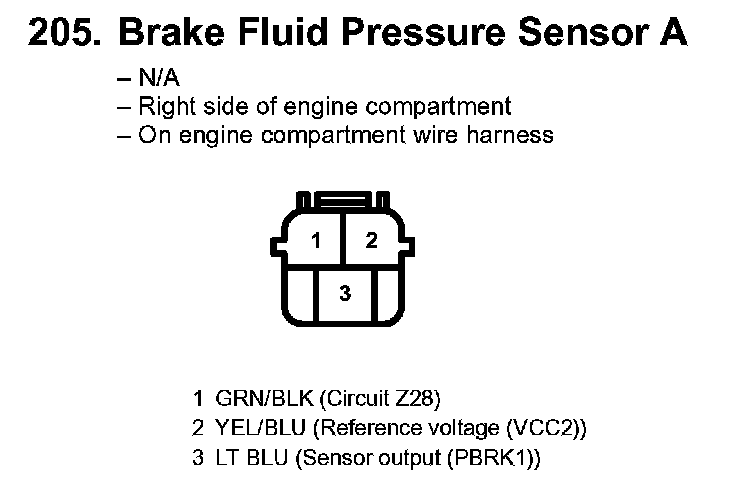 205. Brake Fluid Pressure Sensor A: