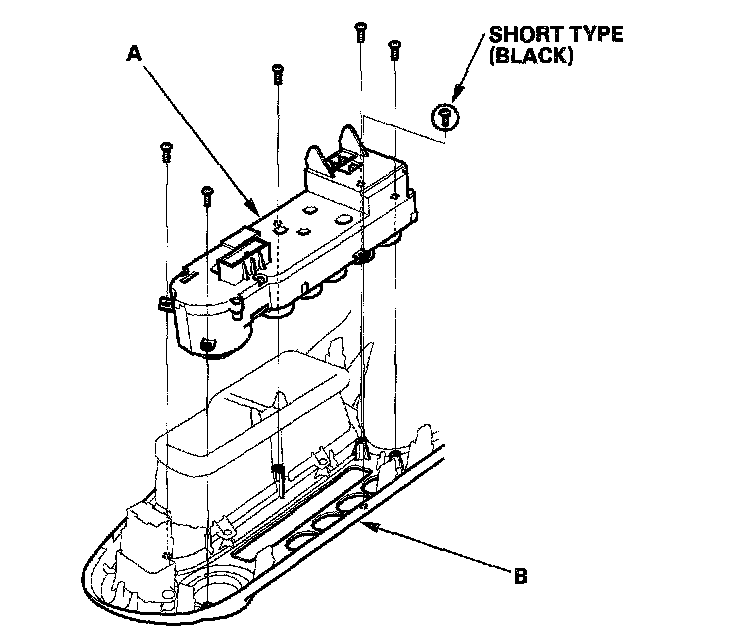 - Be sure to install the short black self-tapping screw in the position shown. If a longer screw is used, it will damage the instrument panel.