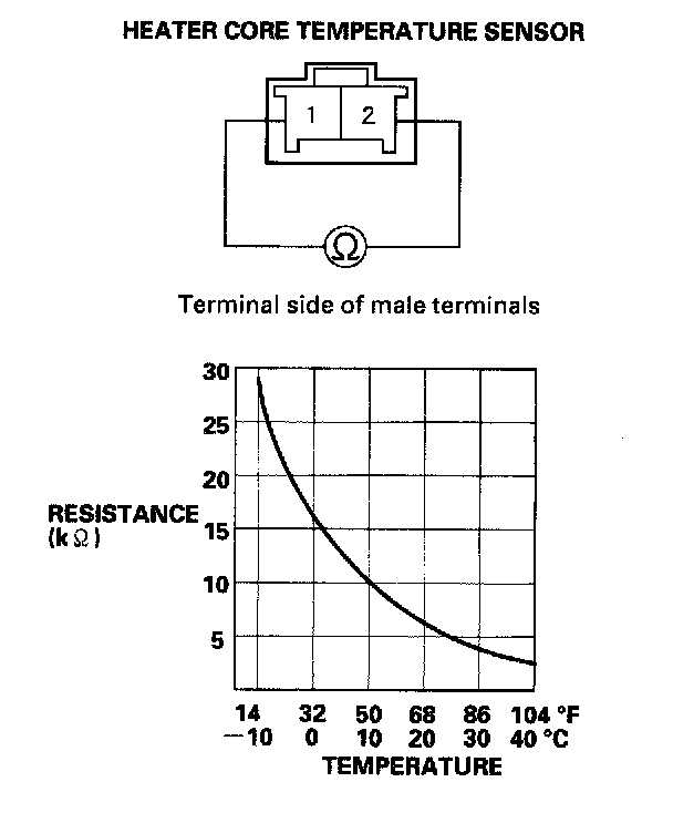 Heater Core Temperature Sensor TestDip the sensor in ice water, and measure the resistance. Then pour hot water on the sensor, and check for a change in resistance.