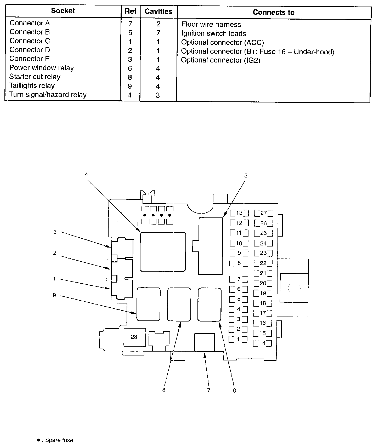 Under Dash Connector-to-Fuse Index: