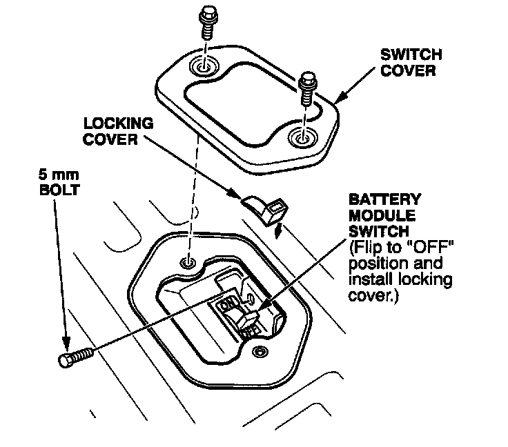 5. Turn off the battery module switch. Reinstall the locking cover on the switch, and remove the 5 mm bolt on the side of the switch.